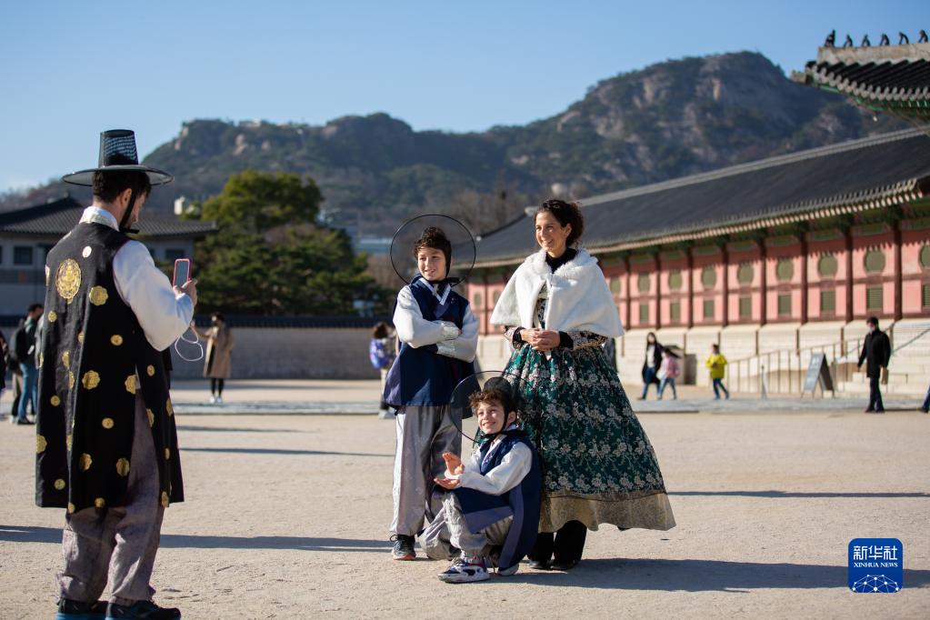 11月26日,人們在韓國首爾景福宮內游覽時(shí)拍照。