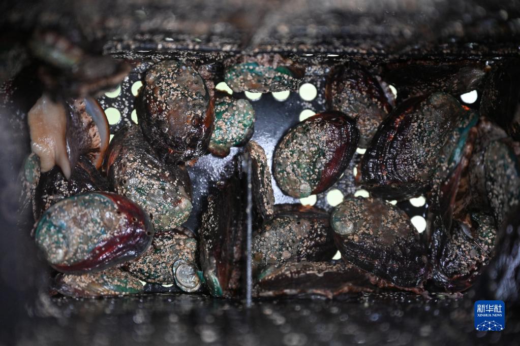 這是11月25日在福州連江縣苔菉鎮后灣海域拍攝的運輸船上裝載的鮑魚(yú)。