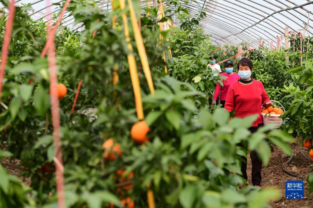 11月26日,村民在肥西縣銘傳鄉王井社區特色蔬果產(chǎn)業(yè)園內采摘“紅美人”柑橘。
