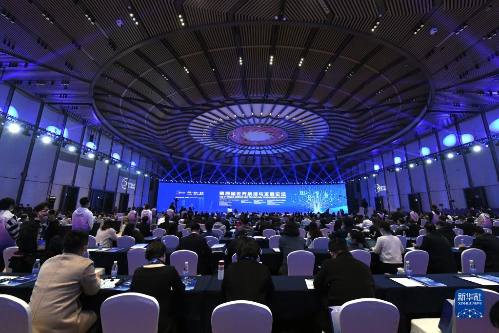 這是11月27日在四川省成都市拍攝的第四屆世界科技與發(fā)展論壇開(kāi)幕式現場(chǎng)。