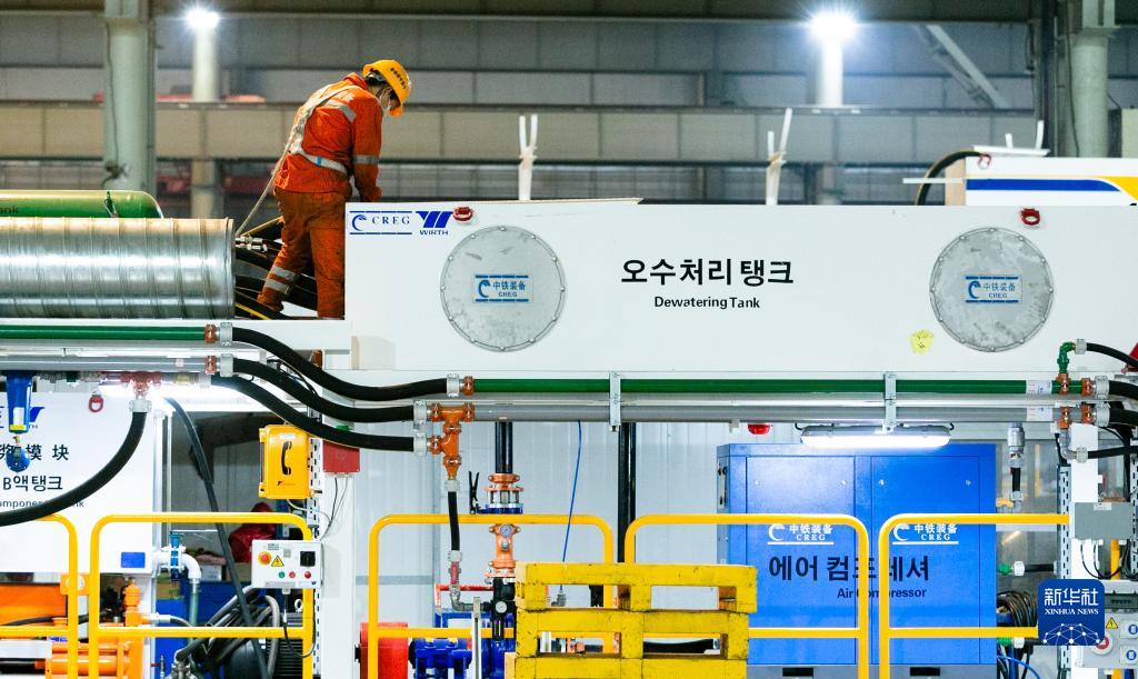 11月23日,工人在中鐵裝備集團車(chē)間內進(jìn)行掘進(jìn)機調試作業(yè)。