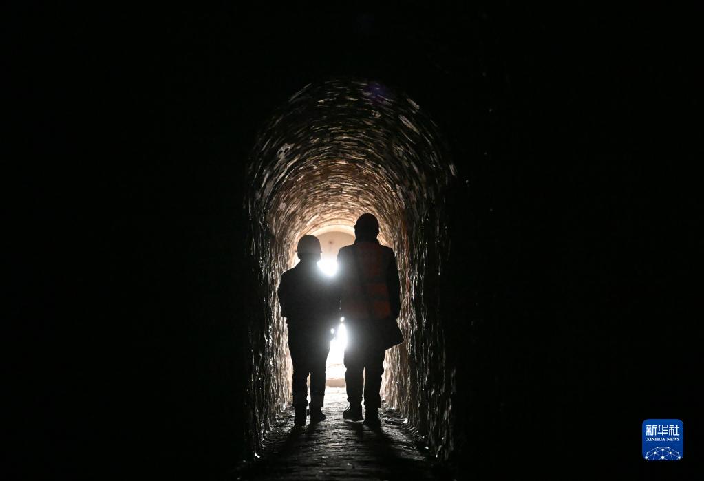 在天津市薊州區白澗鎮,谷叢楠(左)和團隊成員在一處廢棄礦洞實(shí)地踏勘(11月25日攝)。
