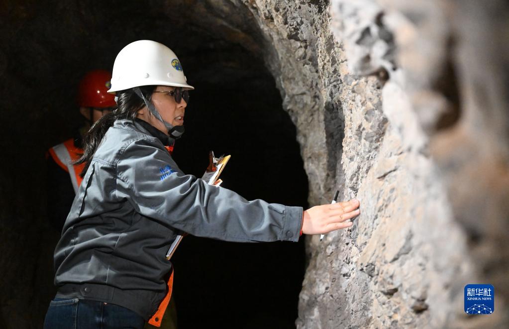 在天津市薊州區白澗鎮,谷叢楠(前)和團隊成員在對一處廢棄礦洞實(shí)地踏勘(11月25日攝)。
