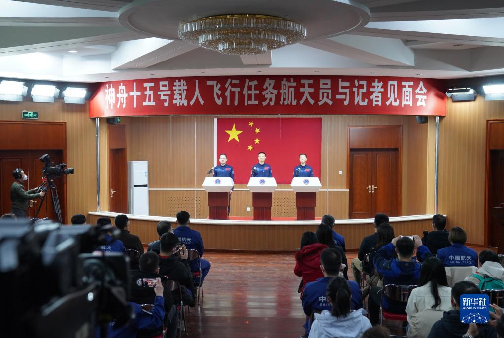 神舟十五號載人飛行任務(wù)航天員與記者見(jiàn)面