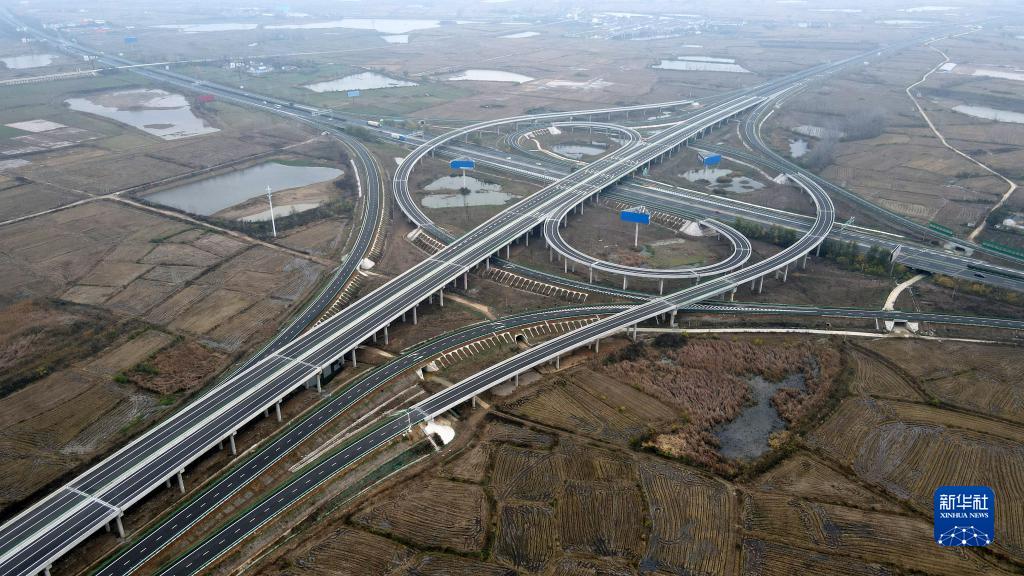 這是安徽路橋集團承建的北沿江高速公路滁州至天長(cháng)段釜山樞紐互通立交(11月27日攝,無(wú)人機照片)。