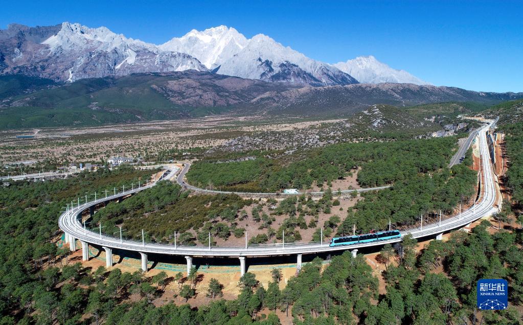新華全媒+丨連接麗江古城和玉龍雪山的麗江觀(guān)光火車(chē)通車(chē)