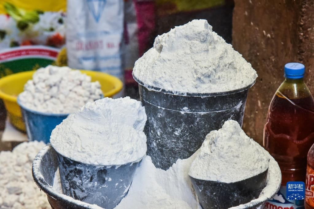 這是11月21日在喀麥隆首都雅溫得拍攝的木薯粉。
