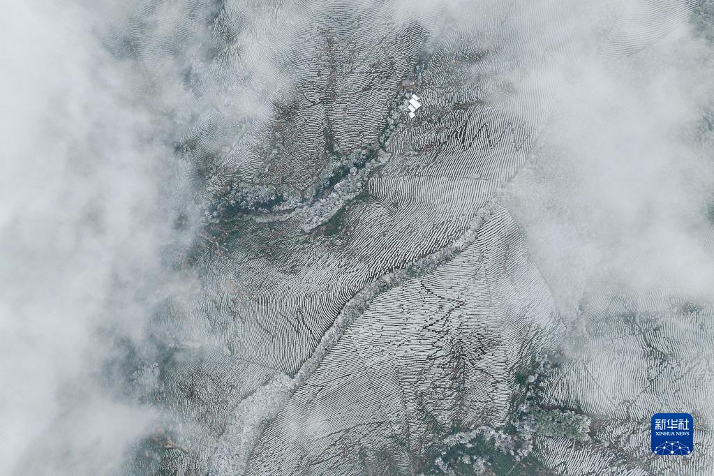 11月30日,在浙江省湖州市長(cháng)興縣和平鎮,大崗山上的茶園被白雪覆蓋(無(wú)人機照片)。