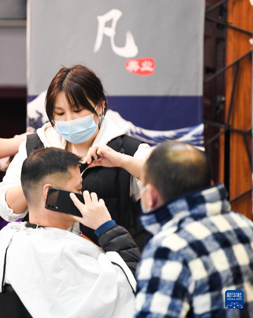 12月2日,重慶市南岸區居民在理發(fā)店理發(fā)。