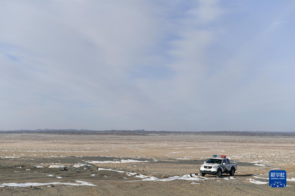 12月1日拍攝的行駛在額濟納旗溫圖高勒蘇木的溫圖高勒邊境派出所便民服務(wù)車(chē)。