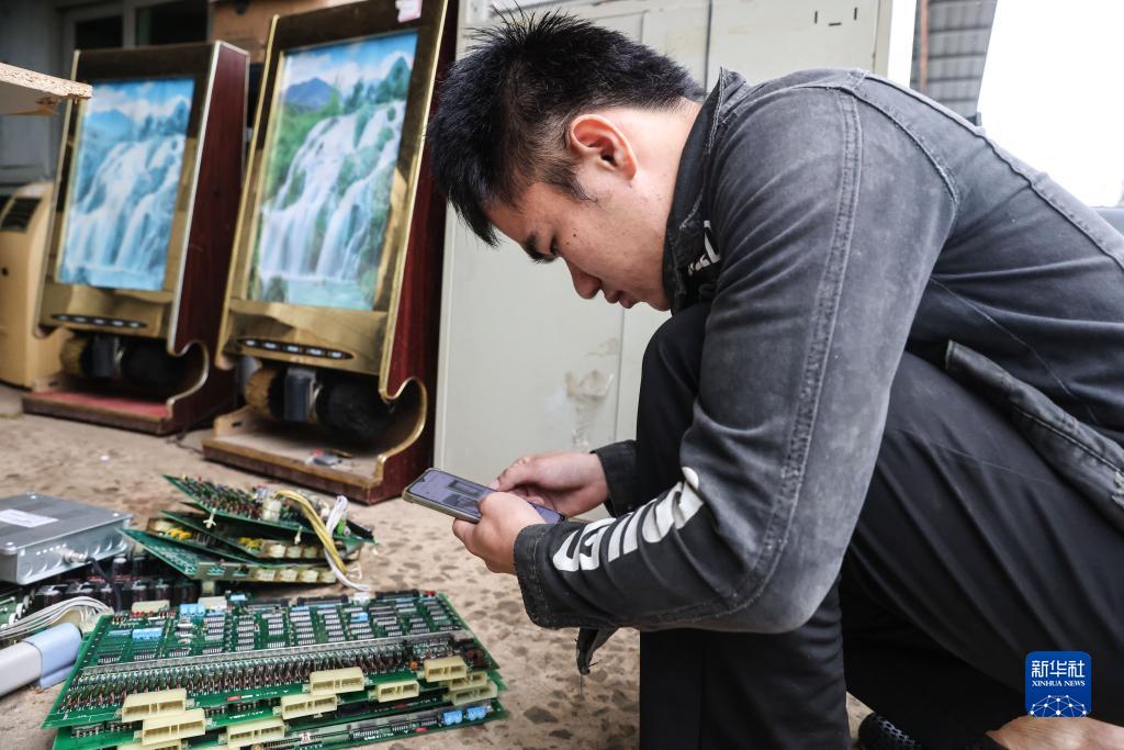 12月1日,海南殘服再生資源有限公司員工王琪祥用手機在線(xiàn)上銷(xiāo)售舊物。