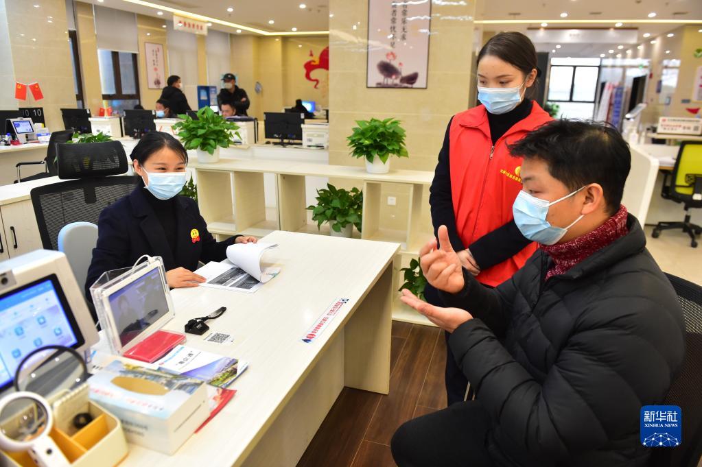 在江西省南昌市紅谷灘區市民中心,市民黃華使用聾聽(tīng)交流設備辦理事項(12月2日攝)。新華社記者 彭昭之 攝