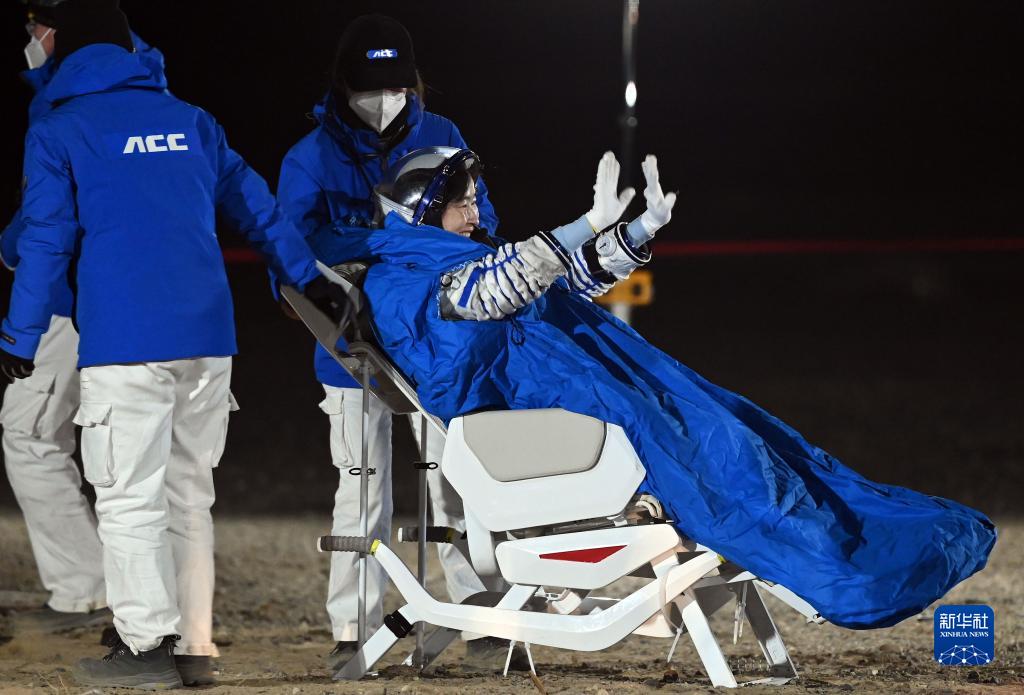 12月4日,神舟十四號載人飛船返回艙在東風(fēng)著(zhù)陸場(chǎng)成功著(zhù)陸。這是航天員劉洋安全順利出艙。新華社記者 連振 攝
