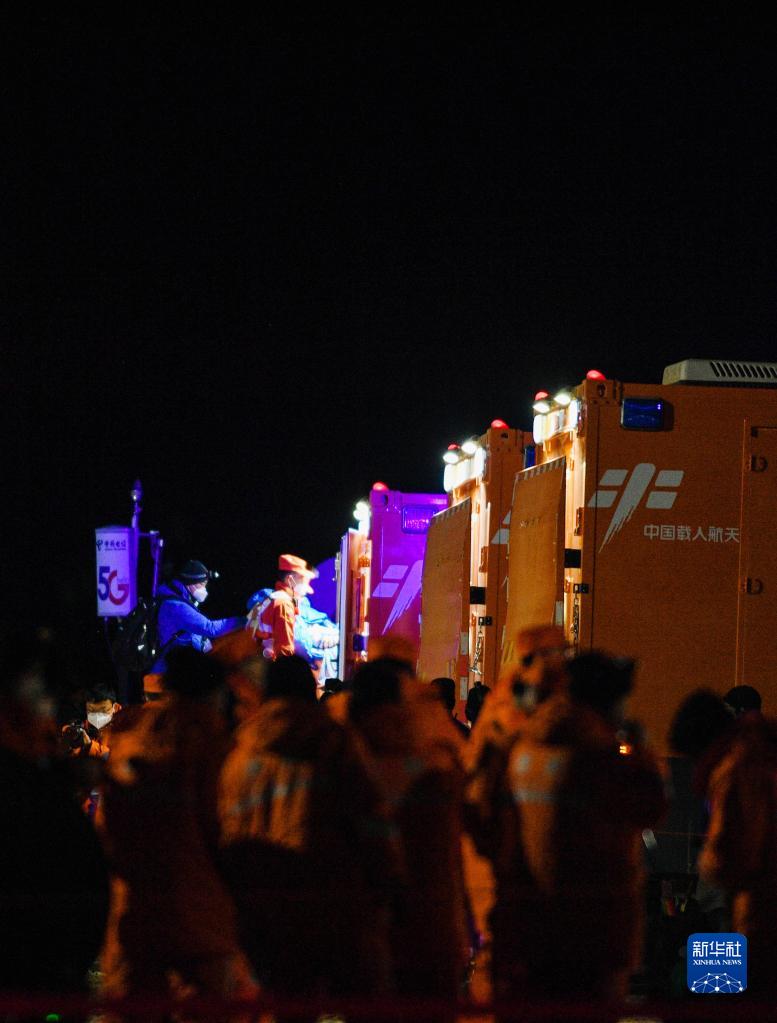 12月4日,神舟十四號載人飛船返回艙在東風(fēng)著(zhù)陸場(chǎng)成功著(zhù)陸。這是航天員安全順利出艙后,工作人員在進(jìn)行現場(chǎng)處理。新華社記者 劉磊 攝