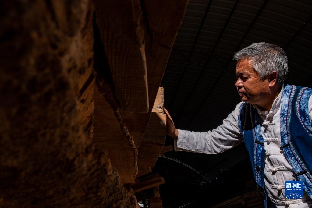 段四興在挑選木材(12月1日攝)。