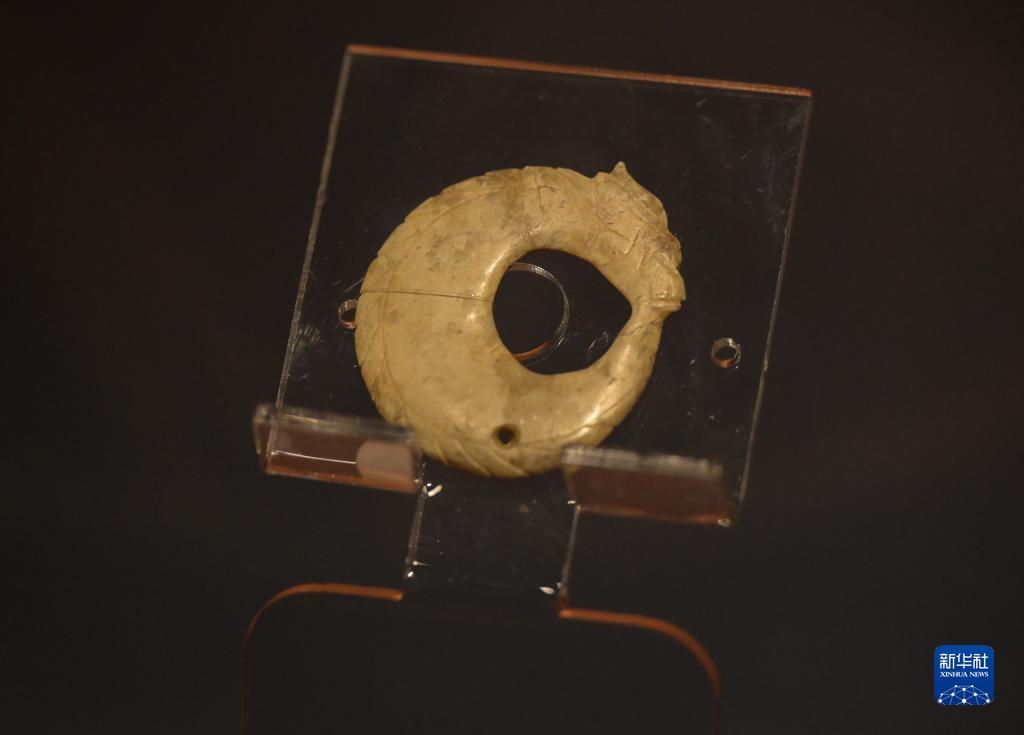 在“凌家灘文化展”上展出的玉龍(12月7日攝)。