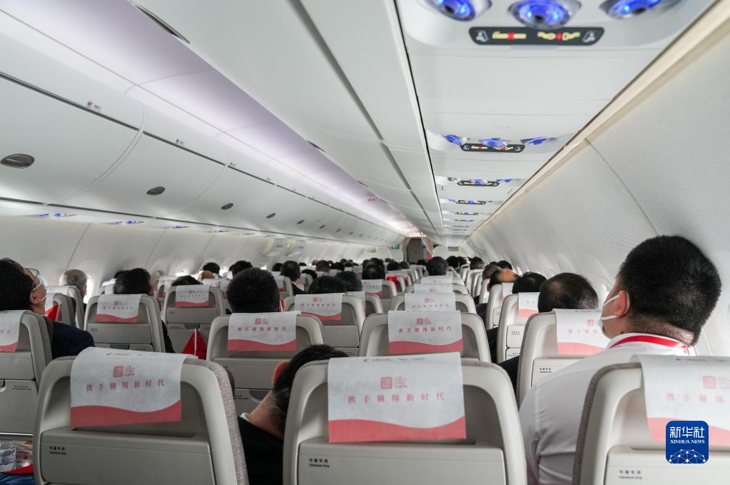 12月9日拍攝的國產(chǎn)大飛機C919機艙內部。