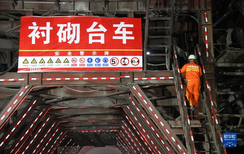 12月9日,施工人員在西延高鐵新延安隧道內作業(yè)。