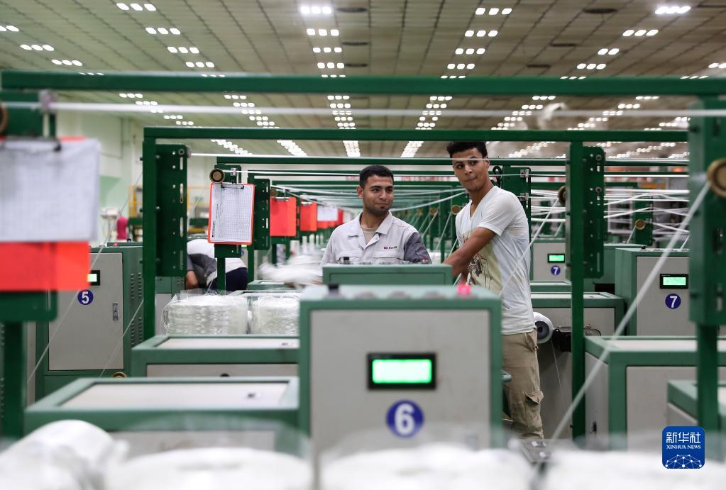 這是9月7日在埃及蘇伊士省蘇赫奈泉港拍攝的中國巨石埃及玻璃纖維股份有限公司(巨石埃及)生產(chǎn)車(chē)間。