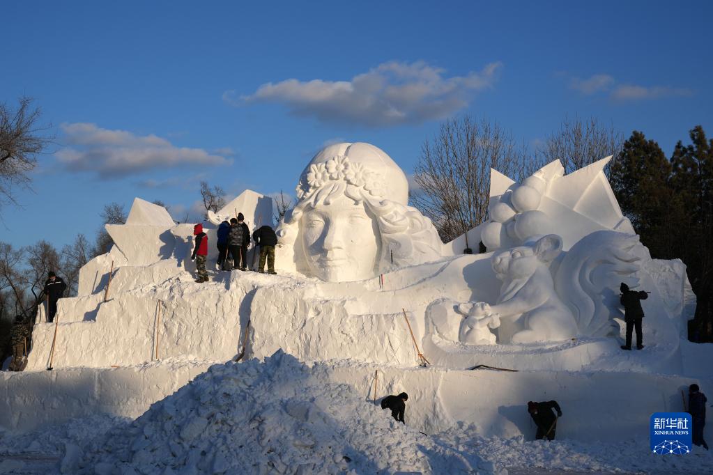 12月9日,雪雕師在哈爾濱太陽(yáng)島雪博會(huì )園區進(jìn)行雪雕創(chuàng )作。