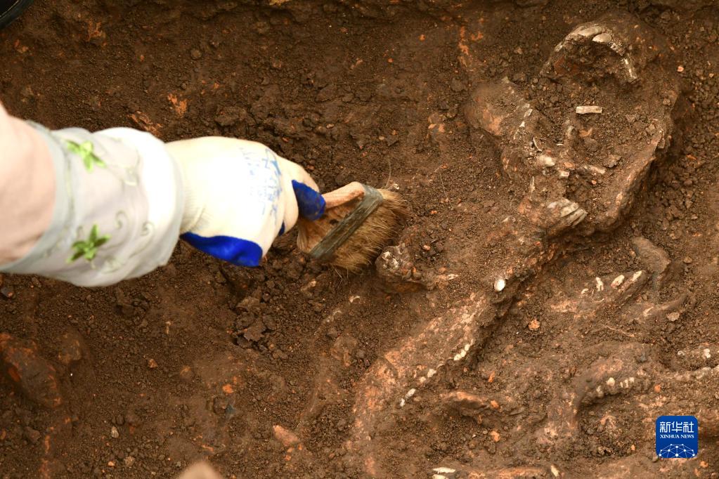 12月10日,工作人員在河南南陽(yáng)黃山遺址考古發(fā)掘現場(chǎng)作業(yè)。