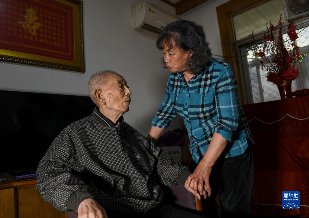 張仕翔在家中和女兒張建玲聊天(4月27日攝)。
