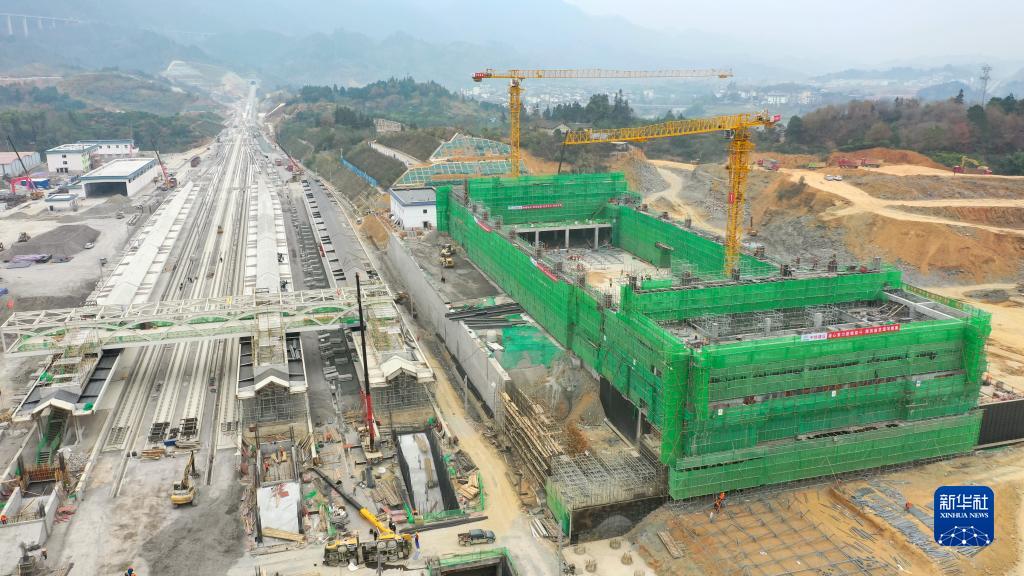 12月12日,荔波站站房成功封頂(無(wú)人機照片)。