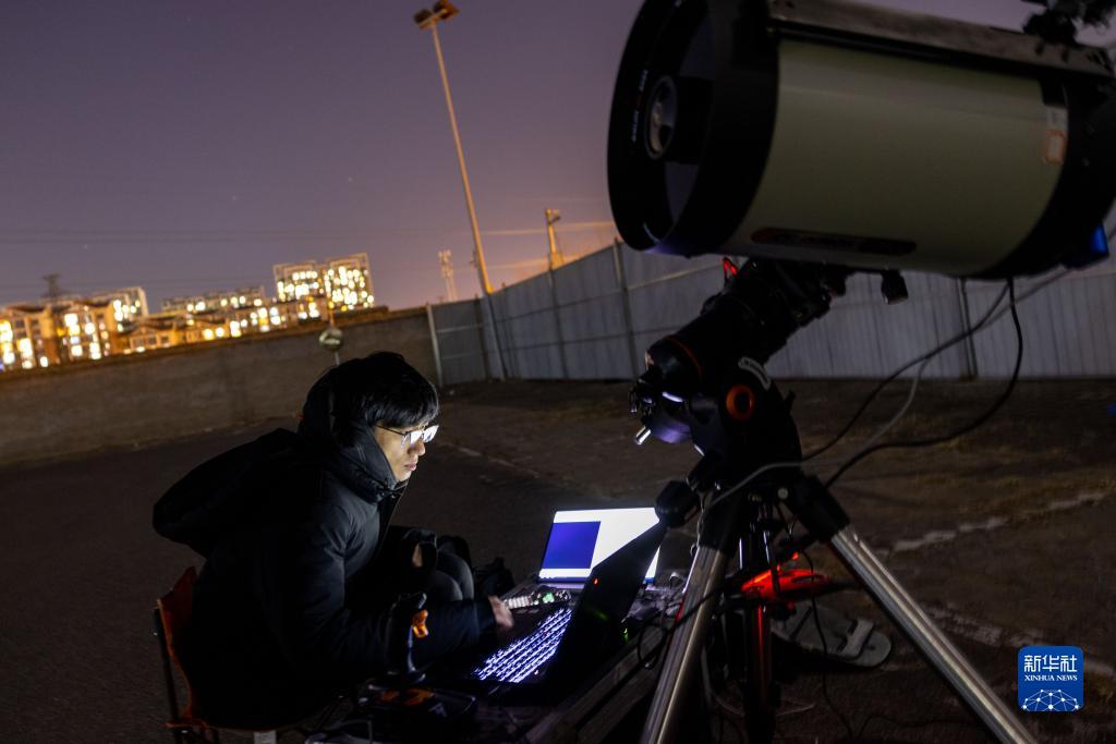 12月4日,在北京昌平一處拍攝地,劉博洋調試追蹤拍攝設備,計劃拍攝即將返回地球的神舟十四號載人飛船。