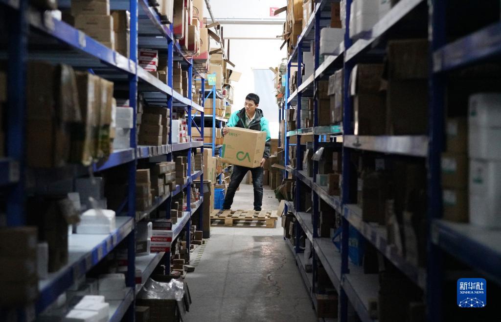 12月12日,工作人員在浙江省樂(lè )清市一電商產(chǎn)業(yè)園理貨。