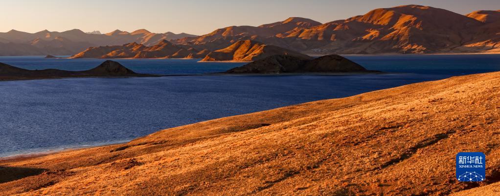 這是夕陽(yáng)下的羊卓雍錯(12月11日攝,無(wú)人機照片)。