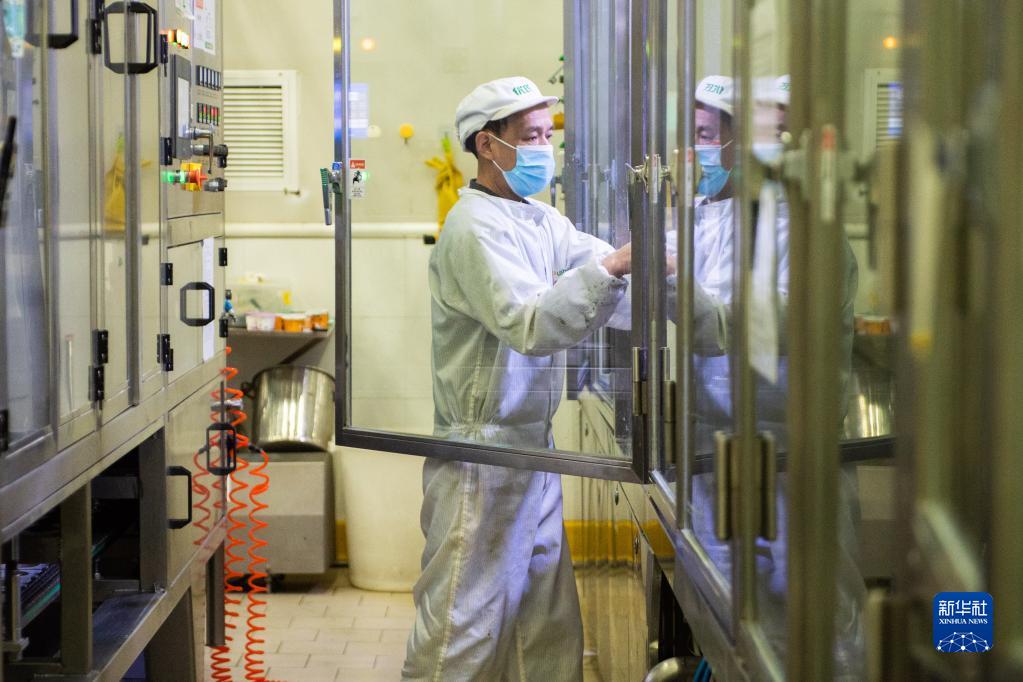 12月13日,在皇氏集團湖南優(yōu)氏乳業(yè)有限公司飲品生產(chǎn)車(chē)間,工作人員在操作生產(chǎn)設備。