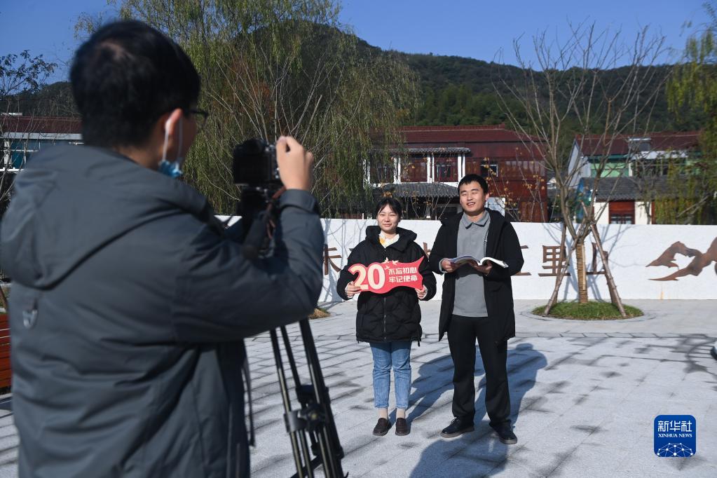 12月13日,在湖州市吳興區道場(chǎng)鄉紅里山村,“道場(chǎng)青年說(shuō)”宣講團成員進(jìn)行黨的二十大精神微視頻宣講的拍攝錄制。