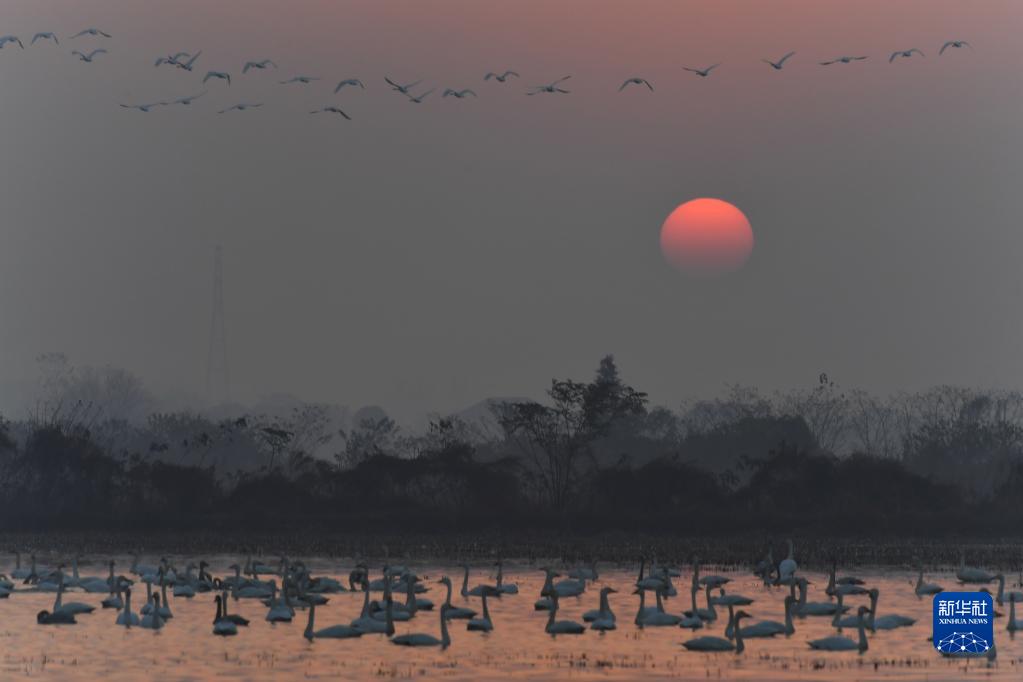 入冬以來(lái),大批候鳥(niǎo)南飛抵達洞庭湖區。