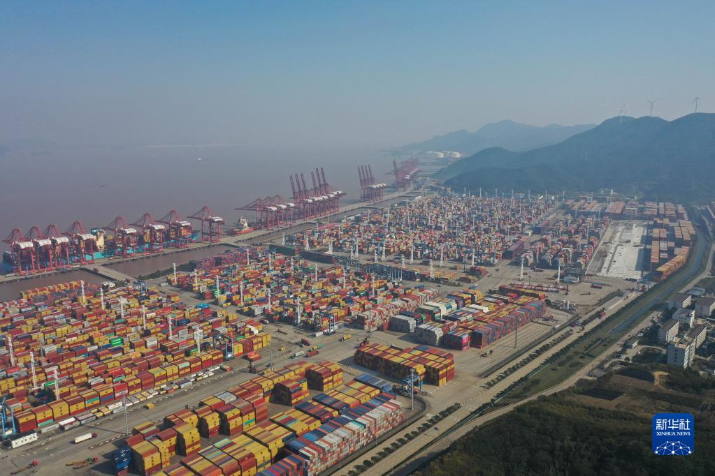 12月13日拍攝的浙江寧波舟山港穿山港區(無(wú)人機照片)。