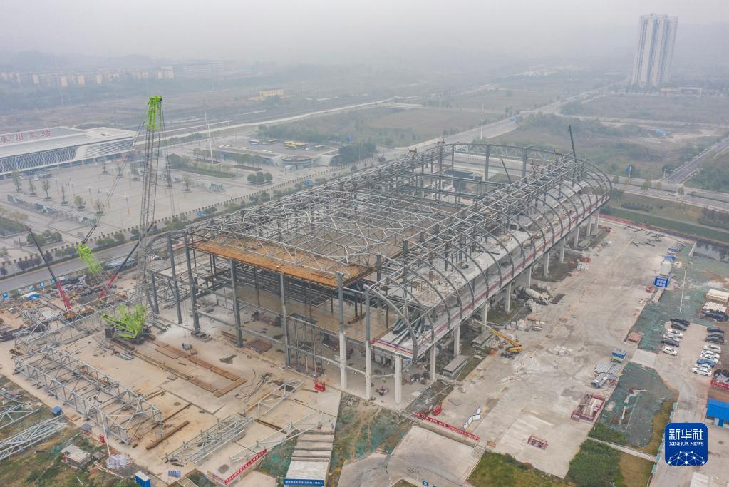 這是12月16日拍攝的重慶市永川區會(huì )展中心項目施工現場(chǎng)(無(wú)人機照片)。