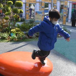 12月17日,小朋友在南寧市青秀區南湖小區改造后的中心花園玩耍。