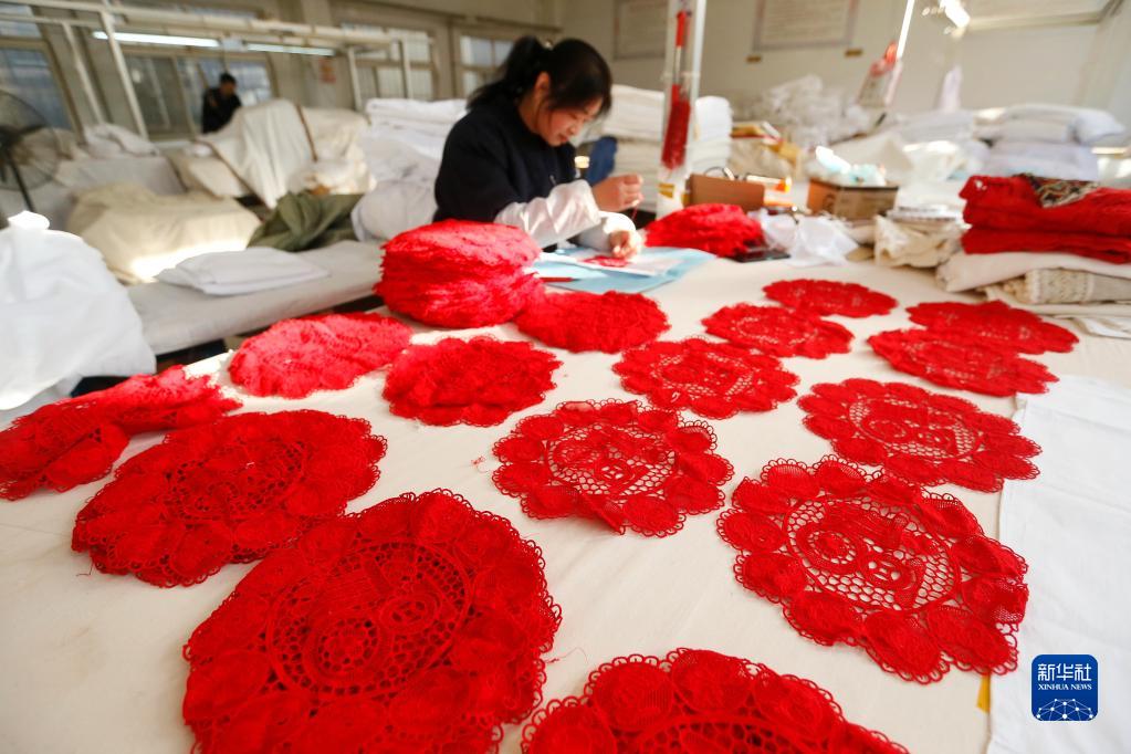 隨著(zhù)新年臨近,山東省青島市即墨區通濟街道花邊企業(yè)的工人忙著(zhù)加緊生產(chǎn),滿(mǎn)足國內外市場(chǎng)需求?!凹茨ㄟ叀笔菄壹壏俏镔|(zhì)文化遺產(chǎn)魯繡的一種,其針?lè )üに嚜毺?,造型宛如浮雕。近年?lái),當地花邊企業(yè)通過(guò)開(kāi)發(fā)設計特色文創(chuàng )產(chǎn)品,開(kāi)展線(xiàn)上線(xiàn)下定制和銷(xiāo)售,產(chǎn)品暢銷(xiāo)海內外市場(chǎng),訂單迎來(lái)產(chǎn)銷(xiāo)兩旺的良好勢頭。