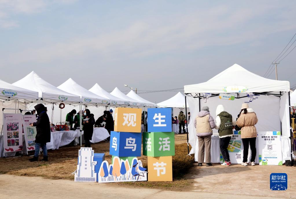 12月17日在上海崇明富圩村拍攝的濱海社區觀(guān)鳥(niǎo)生活節生活集市現場(chǎng)。