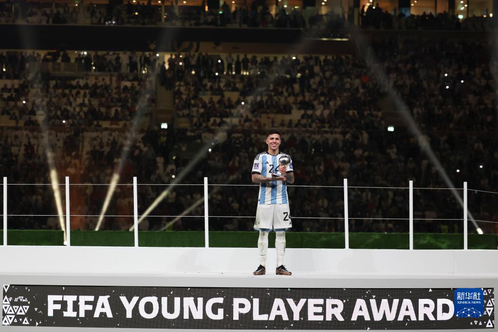 12月18日,獲得世界杯最佳新秀獎的阿根廷隊球員恩佐·費爾南德斯在頒獎儀式上。