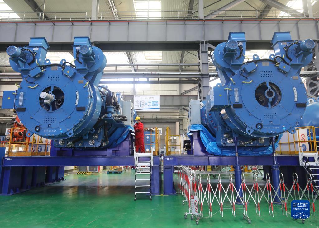 2022年11月14日,工人在河北省張家口市經(jīng)濟開(kāi)發(fā)區一家風(fēng)電設備制造企業(yè)的生產(chǎn)車(chē)間內工作。