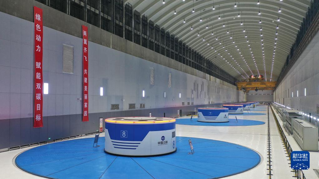這是11月24日拍攝的白鶴灘水電站左岸機組廠(chǎng)房,共裝有8臺百萬(wàn)千瓦級發(fā)電機組(無(wú)人機照片)。