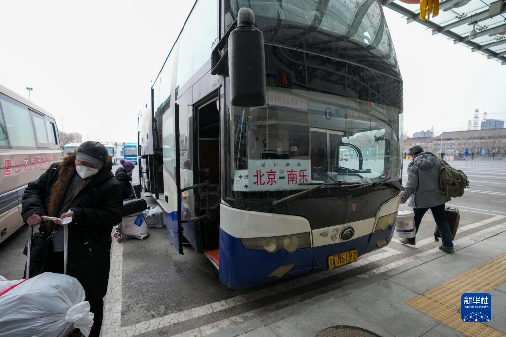 12月20日,在北京四惠長(cháng)途客運站,旅客準備乘坐北京開(kāi)往河南南樂(lè )的長(cháng)途客運班車(chē)。