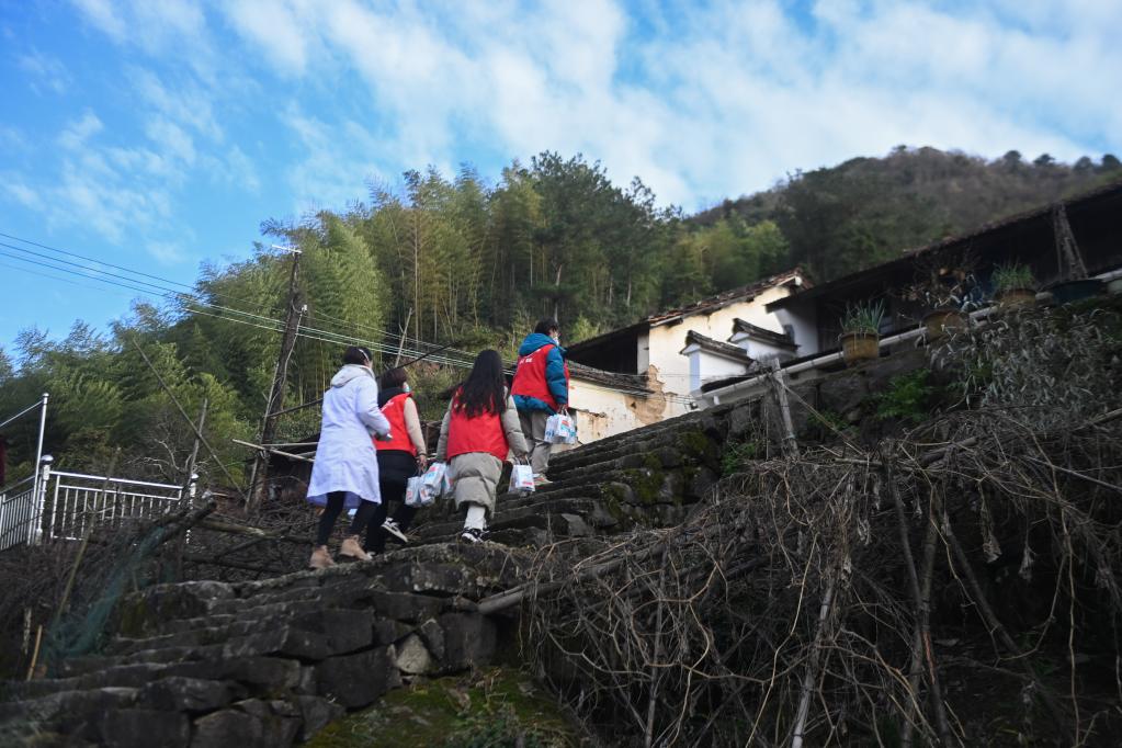 為了保證這些老年人的身體健康,東白湖鎮各村都組建了由村里的黨員、干部、鄉賢等組成的愛(ài)心志愿團隊,籌集退燒藥、抗原檢測試劑、消毒液、口罩等防疫物資,分送給行動(dòng)不便及年老體弱的老人們。同時(shí),鎮衛生院的家庭醫生還為老人及留守兒童提供免費上門(mén)看診、健康監測等服務(wù)。