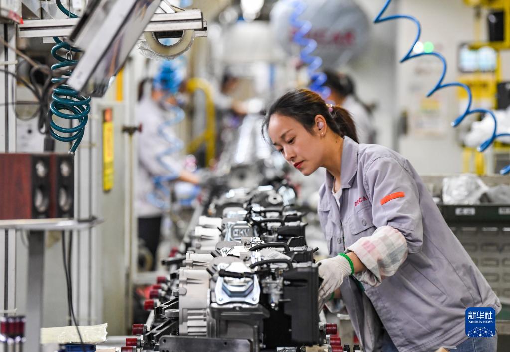 10月19日,在位于重慶市璧山區的一家動(dòng)力設備制造企業(yè),工人在生產(chǎn)車(chē)間作業(yè)。