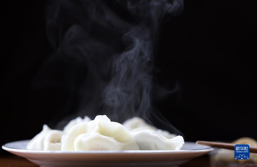 12月10日,在山東省棗莊市,人們把熱氣騰騰的餃子端上餐桌。