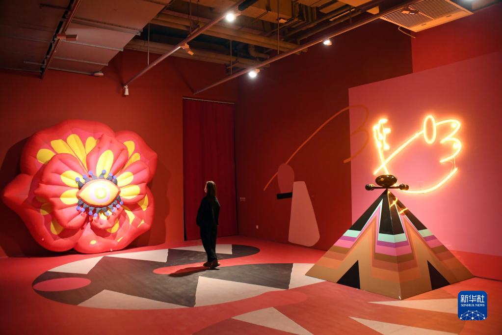 12月21日在北京時(shí)代美術(shù)館拍攝的《聲·生》當代藝術(shù)展中展出的藝術(shù)作品。