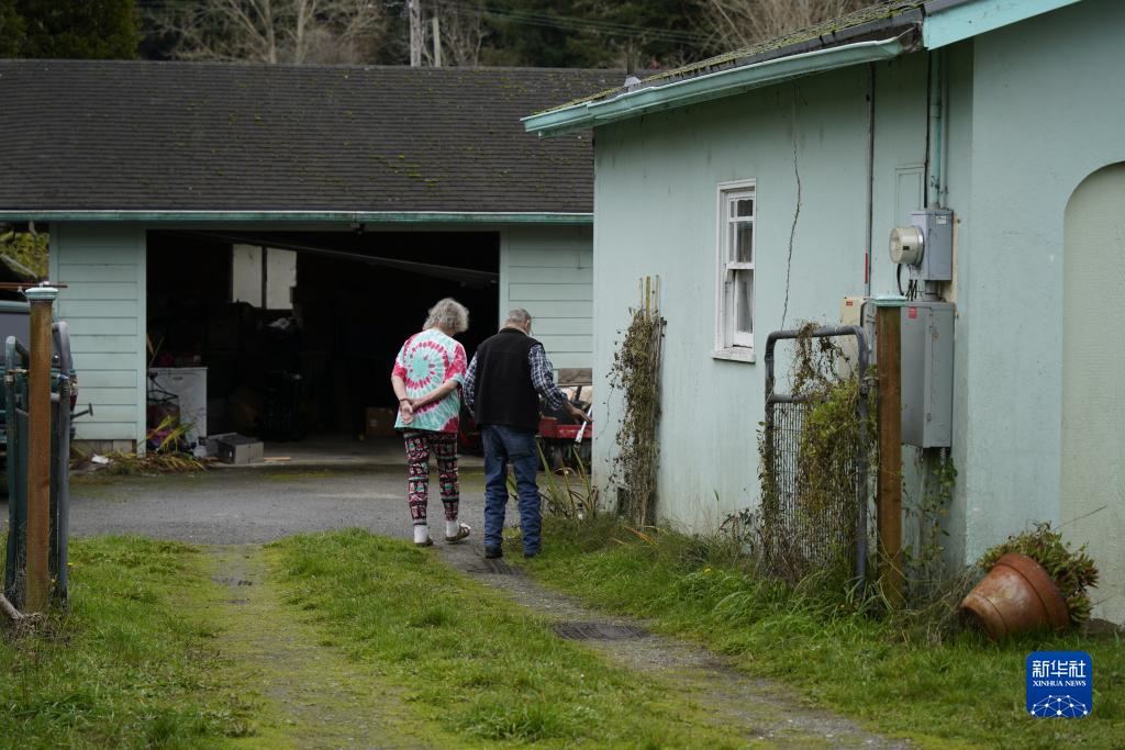 12月21日,在美國加利福尼亞州北部芬代爾,居民查看房屋受損情況。