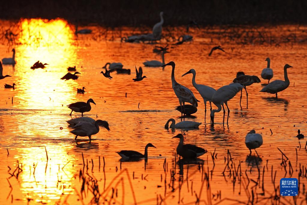 在鄱陽(yáng)湖畔的五星白鶴保護小區,成百上千只候鳥(niǎo)歡快地嬉戲覓食,享受著(zhù)鄱陽(yáng)湖畔的冬日暖陽(yáng)。鄱陽(yáng)湖今年遭遇持續干旱,為保護越冬候鳥(niǎo),愛(ài)鳥(niǎo)人士將候鳥(niǎo)常來(lái)的藕塘租下來(lái),擴建五星白鶴保護小區,周邊的稻田也只種不收,留給候鳥(niǎo)作食物……這一系列舉措保障了候鳥(niǎo)在此棲息越冬。