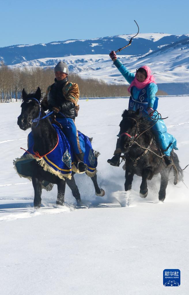 12月21日,新疆伊犁哈薩克自治州昭蘇縣薩爾闊布鄉農牧民舉行“姑娘追”活動(dòng),這是哈薩克族的傳統馬上體育運動(dòng)。入冬以來(lái),昭蘇縣各族農牧民開(kāi)展豐富多彩的民間文化體育活動(dòng),豐富冬閑時(shí)節生活。