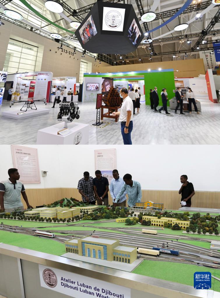 上圖:這是2022年8月19日在中國天津舉辦的世界職業(yè)教育產(chǎn)教融合博覽會(huì )上拍攝的魯班工坊建設·成果展。新華社記者 李然 攝